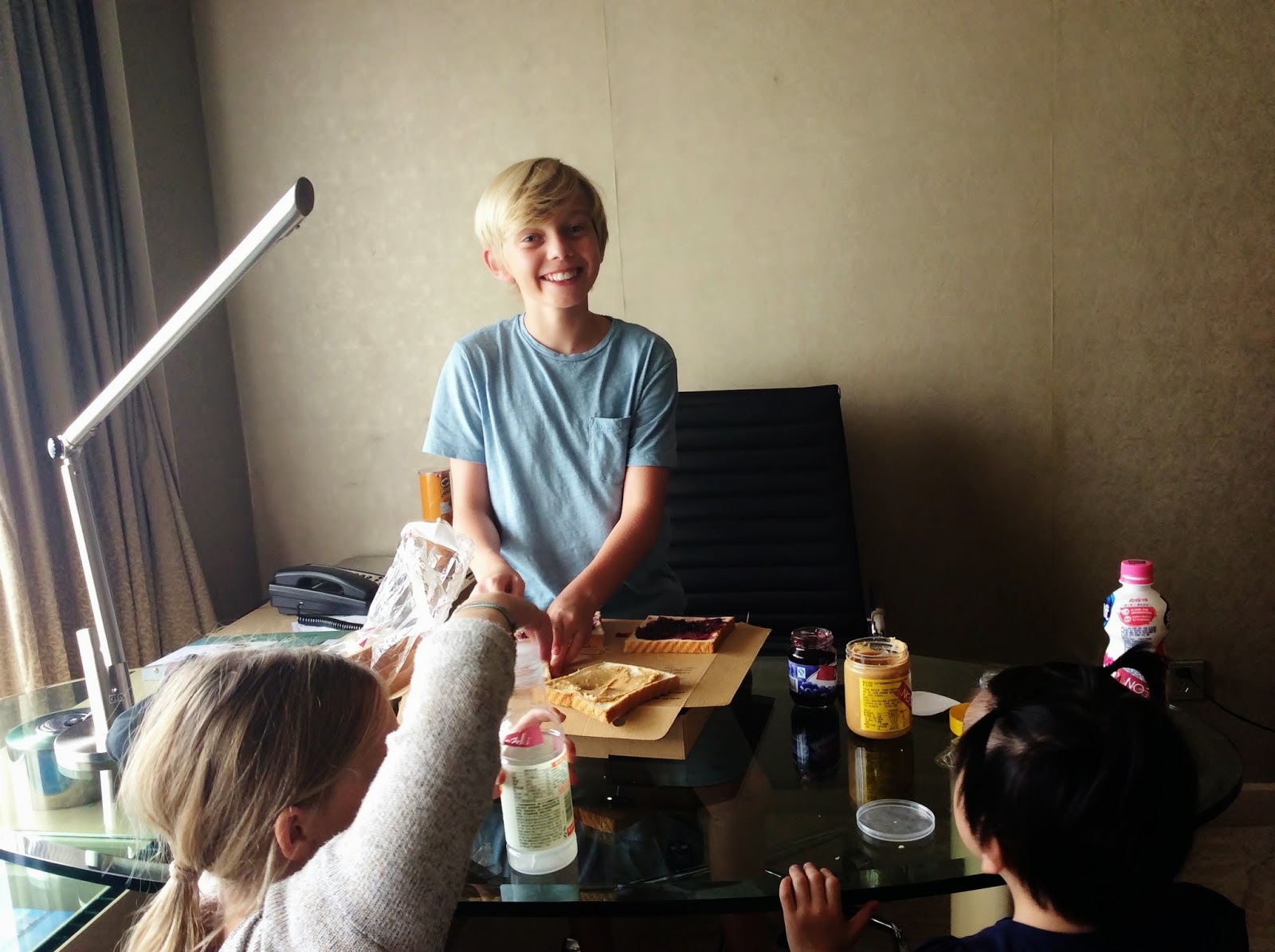 Brodie taught Bea the art of making PB&J...a Brodie favorite back home.